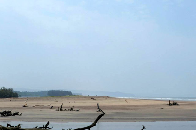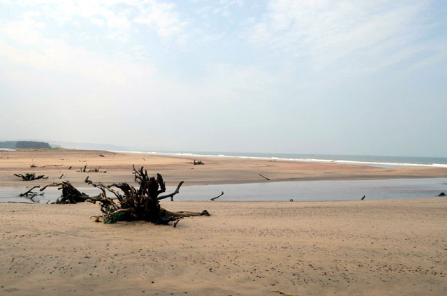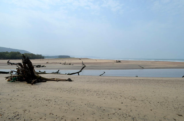 The river changes its direction of flow almost every year resulting in uprooted trees and debris being deposited in different parts of the beach depending on the direction of the flow of water. There is a small stretch of beach with suru trees on the shores reminding one of Keri beach in Goa.