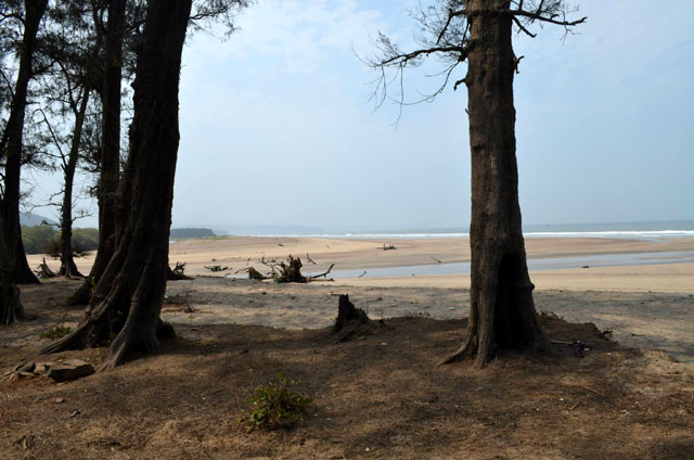 The long stretch of beach starts at Baug with a hillock on its north. The beach has very fine white sand mixed with black sand because of the river confluence. The afforrested region of the beach is perfect for spending some alone time away from everything. Joshua's SCUBA diving made an unsuccessful effort to find a SCUBA dive site near the Baug beach.